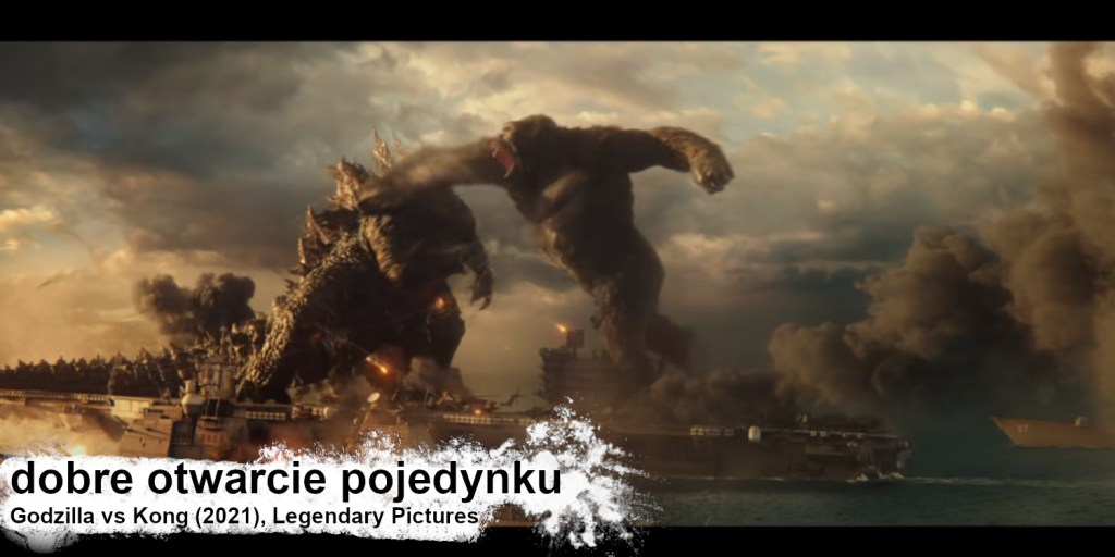 O ile Godzilla – najsławniejszy z kaiju, rządzący srebrnym ekranem w Azji od kilku dekad, nie wywołuje u mnie wielkich emocji, tak znajdowałem się pod bardzo dobrym wrażeniem Konga w odsłonie Wyspa Czaszki, stąd mając w pamięci tenże obrazek, udałem się do kina na zapowiadane „wielkie starcie” wyżej wymienionych delikwentów.