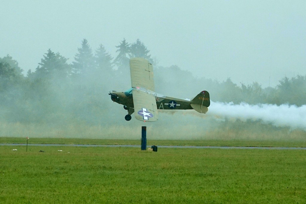 Jako miłośnik historii wojskowości, bardzo ucieszyłem się na pokaz dwóch samolotów Piper Cub, które zapewniły widzom dość długi przelot nad terenem Aeroklubu, prezentując świetnie malowania z epoki IIWŚ oraz widowiskowe manewry powietrzne z wykorzystaniem dymnych smug.