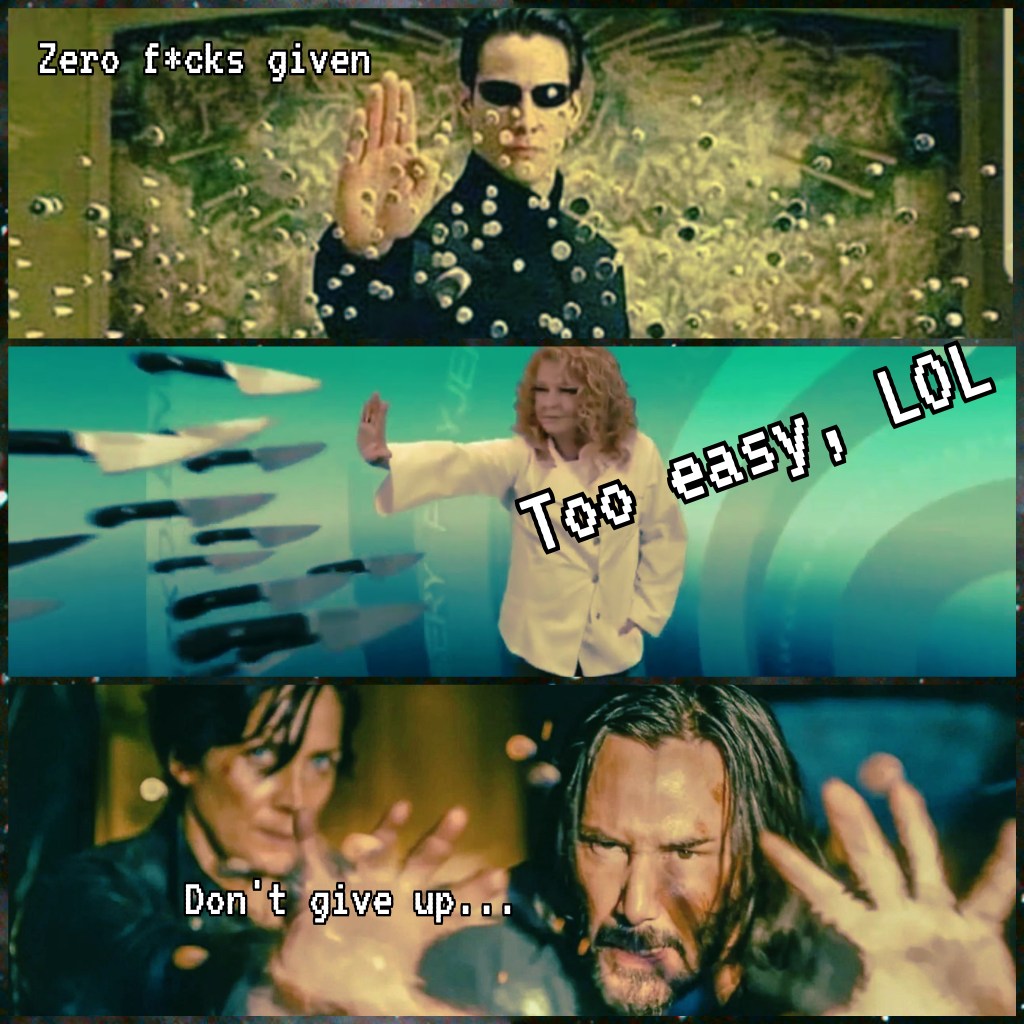 Może faktycznie tak jest i nowa część cyklu przygód o Neo celowo miała przybrać nurt przygód o Trinity, a nowa forma i jej humor ominęły mnie w zwolnionym tempie dzięki nowoczesnej wizji współczesnego kina według Wachowskich… Być może po prostu jestem kiepskim punktem odniesienia, zbyt anachronicznym, by cieszyć się Matriksem innym niż te, które znam?