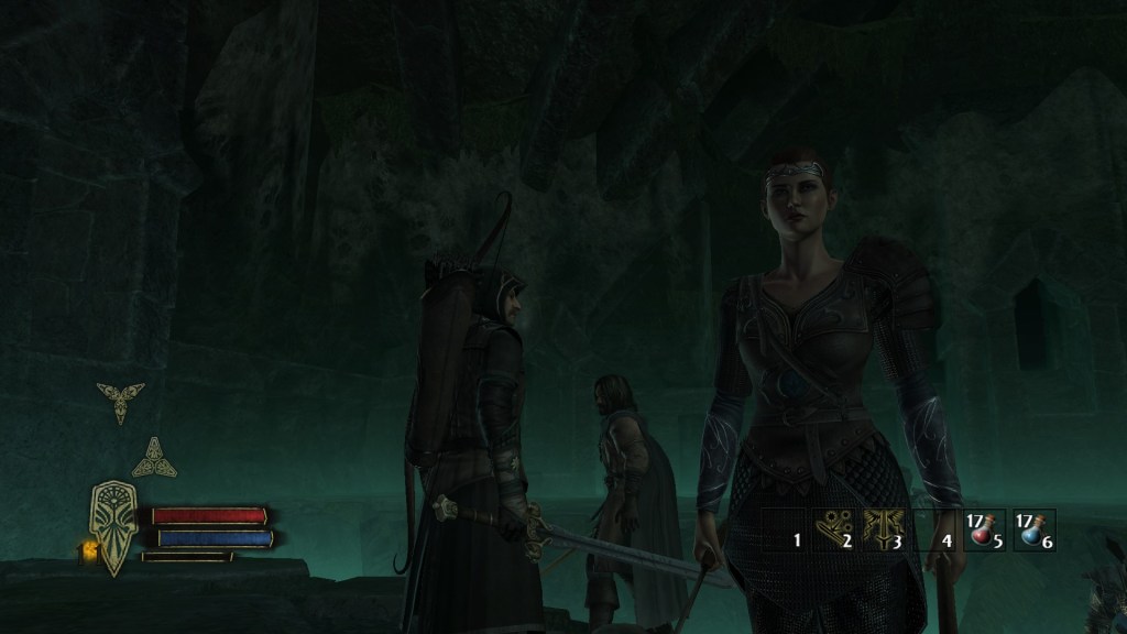 Scenarzyści sukcesywnie okrawają Śródziemie z bardzo istotnego wpływu współpracy istot zaangażowanych w misję pokonania sił ciemności. Owszem, w omawianym tytule mamy do czynienia z wątłą kompanią, w skład której wchodzi człowiek, elfka i krasnolud, jednak są oni ze sobą tak słabo związani wspólnym interesem i mgliście wyznaczoną misją, że trudno mówić tu o jakiejś większej współpracy. Brakuje wspólnego celu i zaangażowania w zadanie, którego widmo niewypełnienia niesie za sobą fatalne konsekwencje dla każdego z bohaterów. Historia ich pochodzenia i geneza zawiązania sojuszu jest tak płaska, iż trudno jest tutaj oprzeć się wrażeniu, że owa trójka spotkała się jedynie po to, aby razem sportowo zapolować na orki i gobliny…
