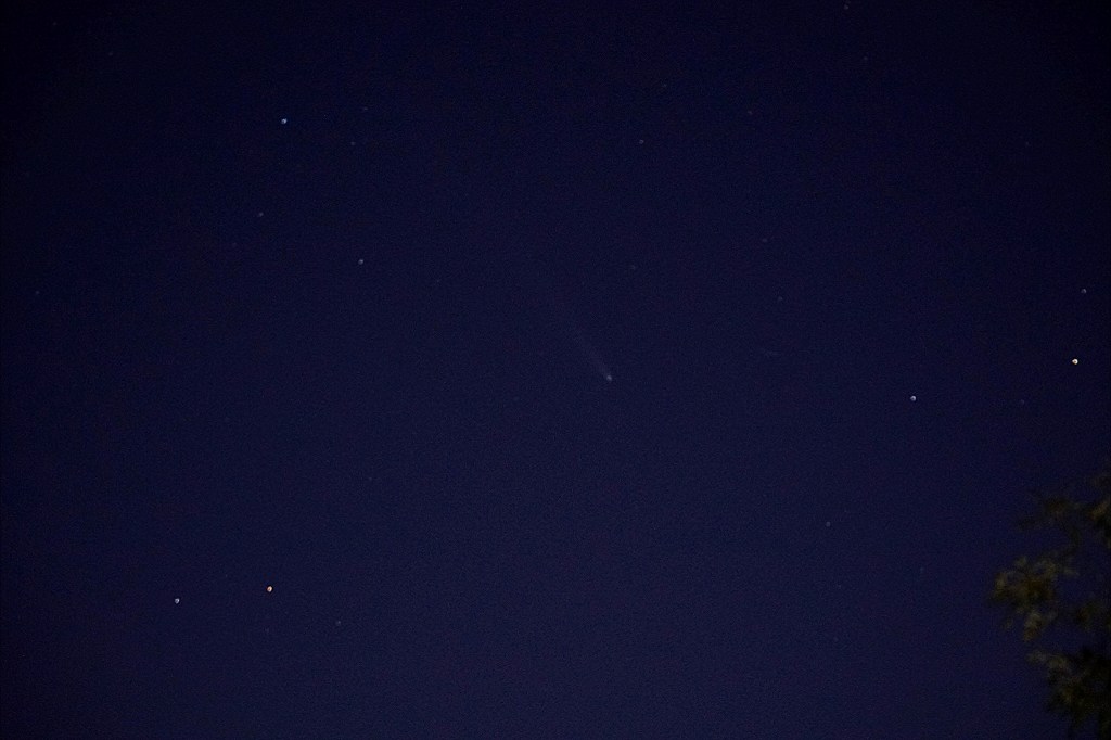 Żona poszła już z synem do samochodu, aby mógł pójść spać, a ja pomyślałem jeszcze, że wyjmę z torby aparat i spróbuję zrobić zdjęcie komecie, choć jestem kompletnym amatorem i nie posiadam obiektywu odpowiedniego do robienia zdjęć nocą…