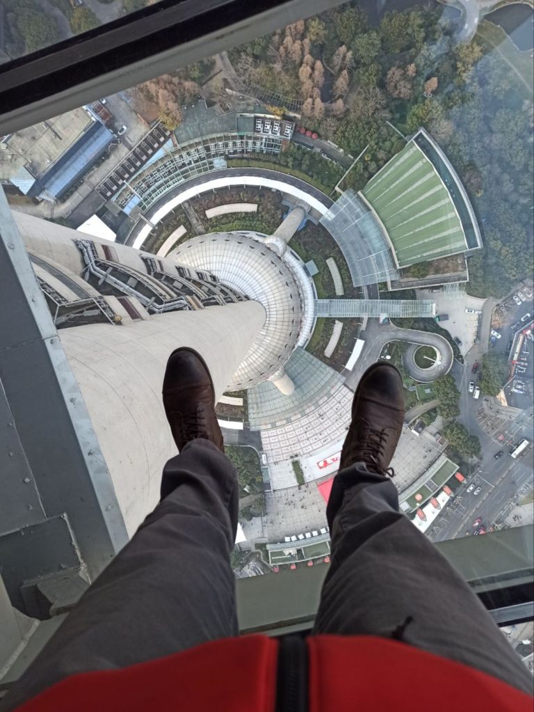 Na zakończenie chciałbym zaprezentować pewien widok: skromne buty ojca redaktora, szyba i 259 metrów wolności pod stopami! Nawet nie wiecie ile walki z lękiem wysokości i przestrzeni mnie to zdjęcie kosztowało… Ale było warto, pozdrawiam Was serdecznie!